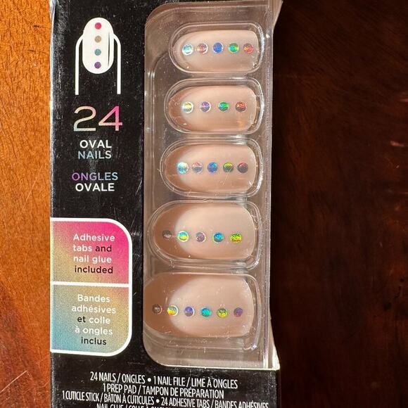 New in box and ready to wear, these nail strips are easy to apply and provide a salon-quality manicure in minutes. Perfect for a special occasion or just to add some sparkle to your everyday style.