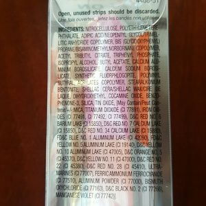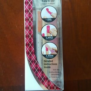 Brand new still in box. They are nail polish strips you just peel, apply and shape as easy as that. They last up to 10 days and the strips are red, black, and white plaid print as shown in the picture above.
