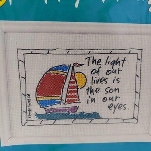 Sally Huss Happy Art Cross Stitch Son Boat NOS Stamped Sailboat Vintage 4008