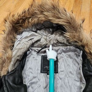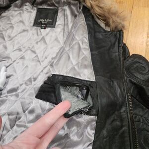 Selling Sally & John New York Mens 4XL Hooded Leather Bomber Jacket Black Streetwear. Has minor rip on outside leather, major rip on inside pocket and has discoloration / stains inside hood (See Photos). You can see the condition from the photos. You can get further information from looking at what is shown in the photos. Pricing low to sell fast. I offer combined shipping on multiple purchases. All purchases should arrive within 2 to 9 days. International buyers should expect longer shipping time. If there are any issues please do the right thing and message me before leaving feedback.