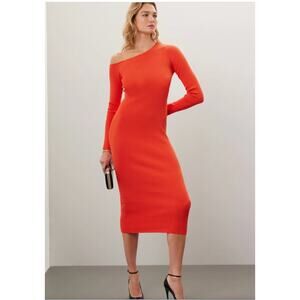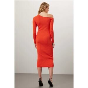 Sally LaPointe Dress Womens Large Red One Shoulder Midi Ribbed Knit