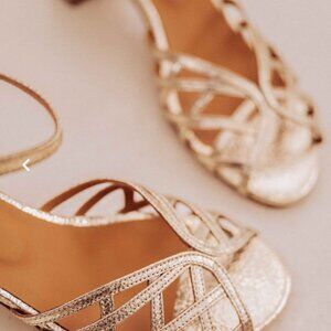 Excellent condition — I only worn them twice. I bought them to wear at my brother’s wedding. Selling because I don’t have any occasion to wear. They are from a Bobbies Paris, a French shoe designer. Color: champagne gold. Sold out on the website.