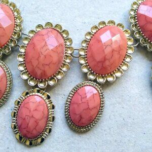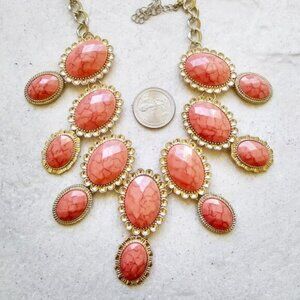 Lovely deep salmon, peachy orangey color with faux stones + gold tone.