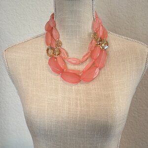 Salmon Pink Acrylic Bead 3 Strand Necklace