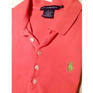 Slim fit button women's polo. Picture of model displays it's true color. The Ralph Lauren logo on the shirt I'm listing is green.