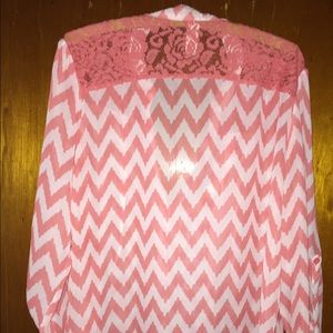 Chevron salmon top with lace. Only worn a few times. Sheer.