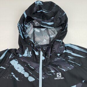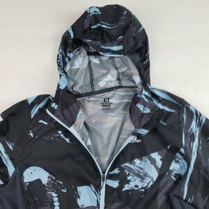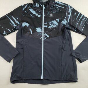 Salomon Agile Hooded Windbreaker Jacket Womens Medium Gray Active Full Zip Run