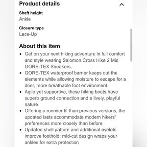 Salomon Cross Hike Mid GTX 2 Size 7 NWT