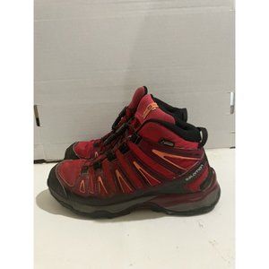 Durable kids boots. Red and black design. Secure lacing system. Comfortable fit.