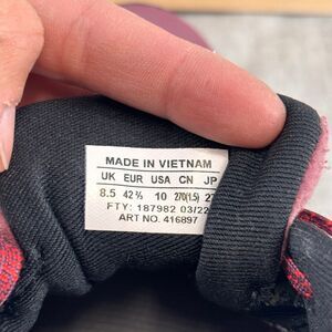 Pre owned in good used condition. Normal signs of having been worn with some wear to be found on the sole and interior heels along with wear to the upper maroon mesh as seen in pictures. Please see all pictures and zoom for exact condition of item as pictures are part of the description and include the item you will receive.