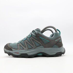 Salomon Pathfinder Women's Size 7 Gray Teal Contagrip Hiking Sneakers 405144