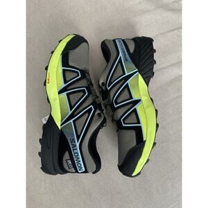 New without the box. Deep lichen green, black and safety yellow Salomon Speedcross JUNIORS in size US 6 youth, they are waterproof with contra grip sole. Perfect for the outdoor hiker or mountain climber. Let me know if you have any questions!