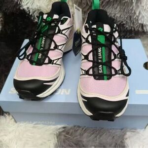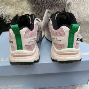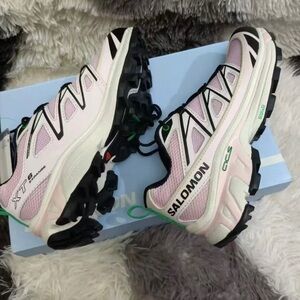 Stylish Salomon sneakers with a pink and black design. Perfect for active wear.