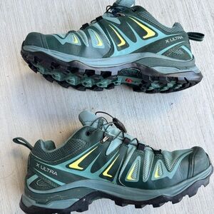 -Salomon X Ultra 3 GTX Low Hiking Shoes Womens 7.5 Arctic Spruce Teal Blue Green