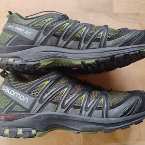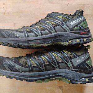 This pair of Salomon XA Pro 3D trail running shoes in Size 13 (army green) is in like new condition. See pics of treads with no wear at all.