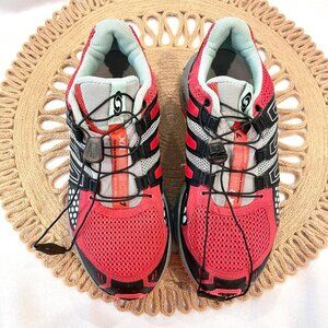 These are gently used Salomon XR Mission 1 All Terrain Red Black Running Sneakers Men's Size 7. In very good condition. Minor signs of wear to uppers and soles. See all pics for condition.