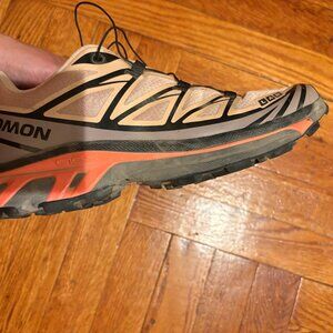 Color now off the market. Pink with pink and purple detailing. Worn about 5x, still in near-perfect condition. Link to the current model: https://www.salomon.com/en-us/product/xt-6-lg4239/L47866100.