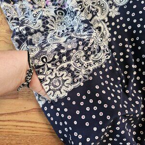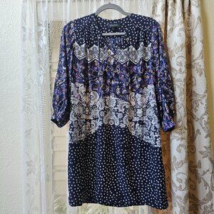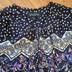 Saloni 100% Silk 3/4 Sleeves Lace Up Plunge Boho Tunic Mini Dress, US 4
