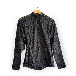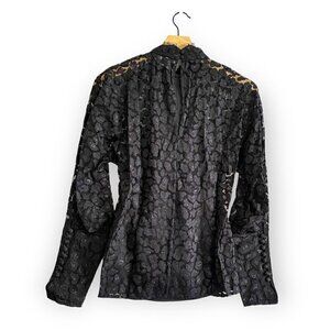 tag: lace, animal print, mock neck, boho, glam sheer long sleeve