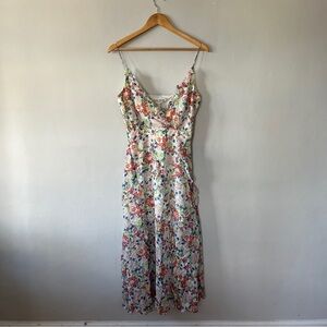 Saloni Ayla-B Floral 100% Silk Dress Floral Midi Ruffle Size 4 NWOT