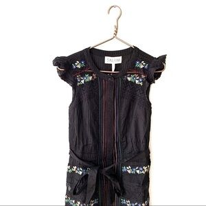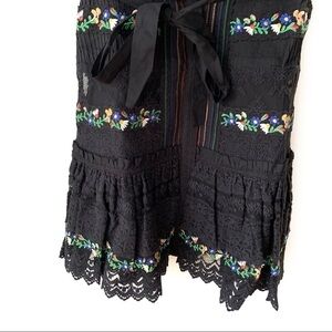 Saloni Black Pintuck Embroidered Boho Peasant Dress Womens 2 New