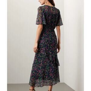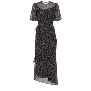 Saloni Blue Floral Chiffon Midi Dress SIZE 8 Silk Ruffle Romantic Designer $800