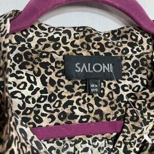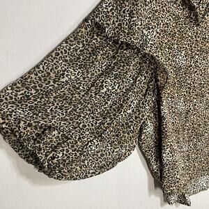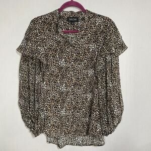 Saloni Button Down Top Women US 12 Brown Cheetah Flutter Silk Blouse Classic