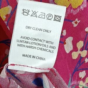 Saloni Chloe floral top in women's size 4. Pink with multicolor floral print 100% silk chiffon. Button front. Concealed button placket. Ruffles at the shoulders. 3/4 length sleeves. Some small spots on the button placket. Not too noticeable due to the print. See photo.