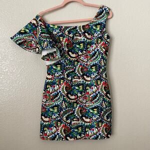 Saloni Dress Womens Size 6 Green Greta One Shoulder Mini Artsy Hippie Cocktail