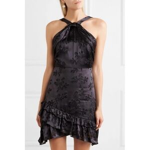 Saloni Faye Ruffled Silk Satin Jacquard Mini Dress Black NWT