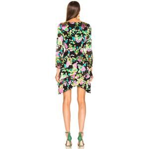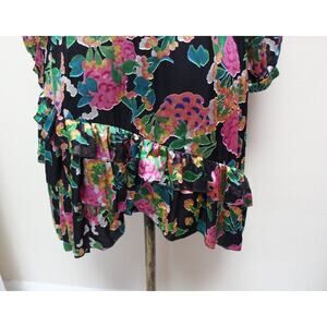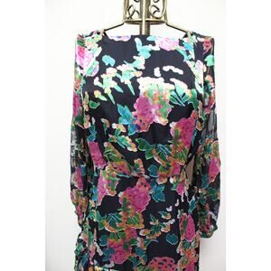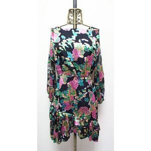 Saloni Felicia Hydrangea Black Metallic Floral Ruffle Long Sleeve Dress Size 4