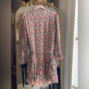 tags: designer, mini, a-line, wrap dress, floral, silk, silky, cocktail, party, garden, spring, summer, feminine"