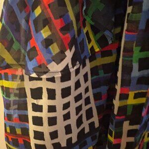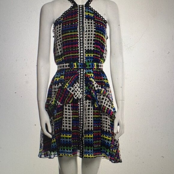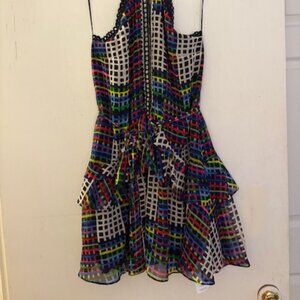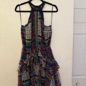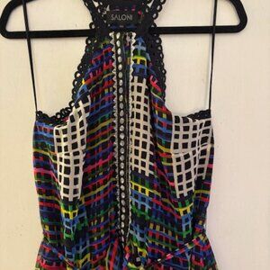 Stunning Saloni silk dress, Sz 6, Geometric print, buttons up in the front. NWOT in excellent condition, stored in a smoke free home.