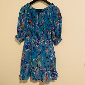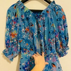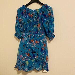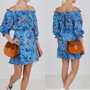 Saloni Grace Mini Dress Silk Blue Bell Wood Off the Shoulder 4