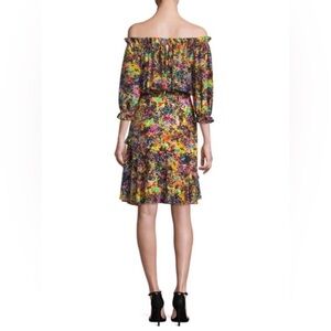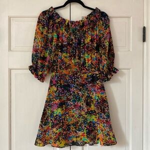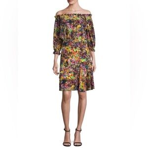 Saloni Grace Mini Dress in Golden Elixir Off Shoulder Colorful Splatter Floral