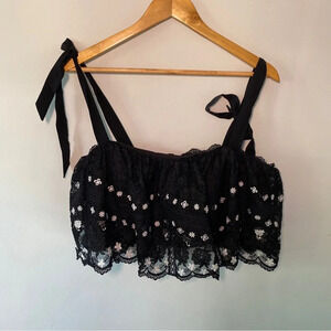 Saloni Jemi Tie Strap Silk Blend Top in Black Size 10 NWOT