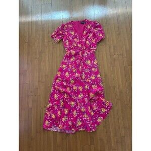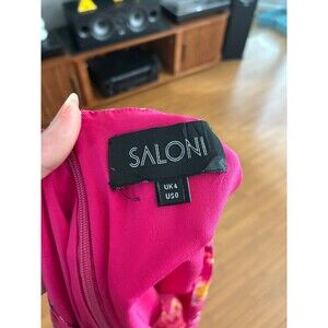 Saloni 'Lea' Floral Button-Front Midi Dress Pink Silk Women's US 0 XS