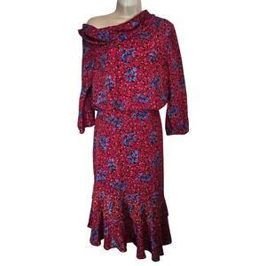 Saloni Lexie Off The Shoulder Folder Asymetrical Cowl Neck Pleated 100% Silk 12