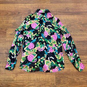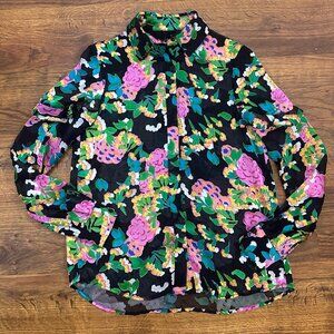 This season's Myra shirt has been updated with a romantic multicoloured floral print. Crafted from a lightweight silk blend, it features a high neckline and buttoned cuff sleeves to add a current feel to this blouse.