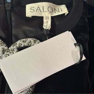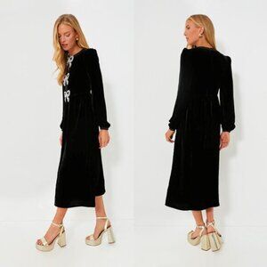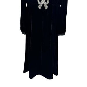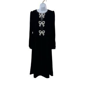 Saloni NEW Velvet Camille Bows Long Sleeve Formal Elegant Midi Dress Size 2