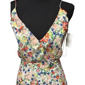 Saloni NWT Ayla Floral Silk Midi Dress Sz 0 Day Rosette Sleeveless Ruffled Party