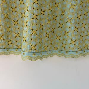 Saloni NWT Jesse Broderie Embroidered Hourglass Eyelet Cotton Mini Dress in Duckegg and Citrine, Size 4