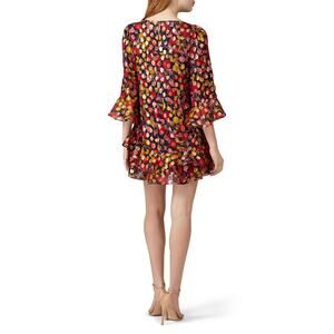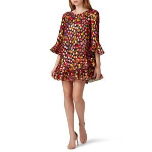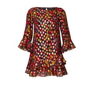 Saloni Polka Dot Marissa Mini Dress Ruffle Floral Metallic Silk Blend Size 8