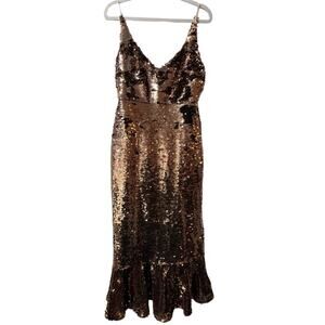 Saloni Sequin Dress Sleeveless Open Back Cocktail Midi Bronze Sz 4 Retails $795