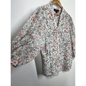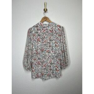 Saloni Silk Chiffon Floral Blouse Size 2 Sheer Puff Sleeve Top