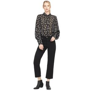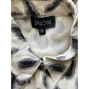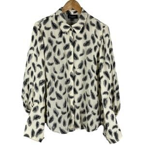 Saloni Silk Jacquard Metallic Feather Button Front Puff Sleeve Blouse Size 10