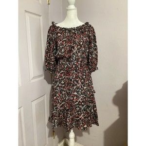 Saloni Silk Multicolor Paisley Ruffle Knee Length Dress Smock Neckline 6