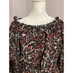 Saloni Silk Multicolor Paisley Ruffle Knee Length Dress Size 6 Black, red and white Half sleeves Keyhole back Back zip closure Lined