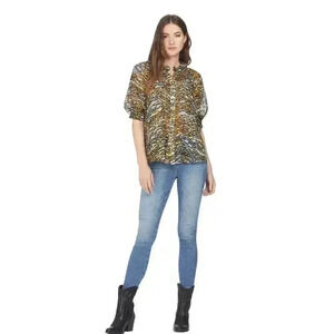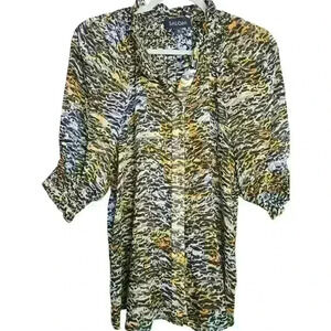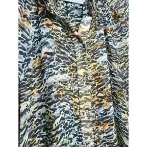 Tiger print with ruffled collar and cuffs, 3/4 length sleeves