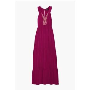 Saloni Suzi Ruffle Lace Trimmed Crinkled Gauze Maxi Size 6 Dress Magenta $625